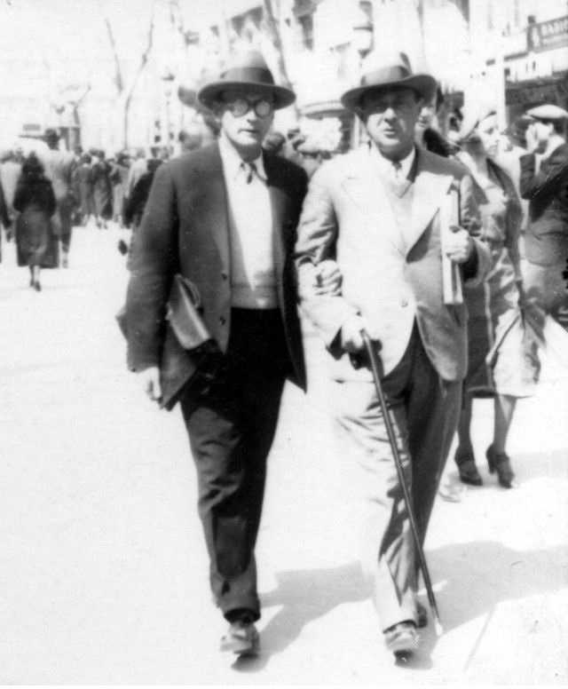 1920年代末的維也納,韋伯與荀白克合影,維也納第二樂派是20世紀初由荀白克及其學生貝爾格、韋伯恩組成的作曲群體。音樂從晚期浪漫擴展調性,發展為無調性,最終採用勳伯格的十二音列序列作曲法,影響後世作曲家。其形成主要源自勳伯格的創作榜樣。