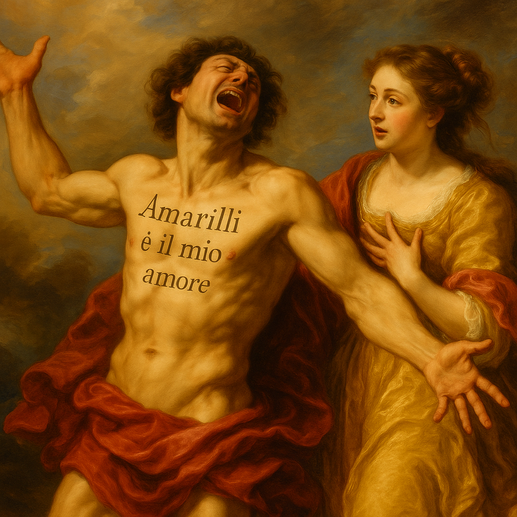 「新音樂集」中的「阿瑪莉莉,我美麗的姑娘(Amarilli, mia bella)」,是一首簡潔的情歌。