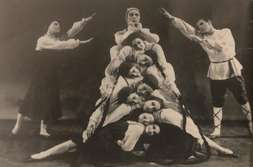1966 年,英國皇家芭蕾舞團演出《婚禮(Les Noces)》第一場中,新娘由斯維特蘭娜・貝里奧索娃(Svetlana Beriosova) 飾演。左側為飾演新娘母親的格爾德・拉森(Gerd Larsen),右側則是飾演新娘父親的雷・羅伯茨(Ray Roberts)。在舞台上堆疊的人頭造型中,莫妮卡・梅森(Monica Mason) 位於由下往上數的第三個位置。